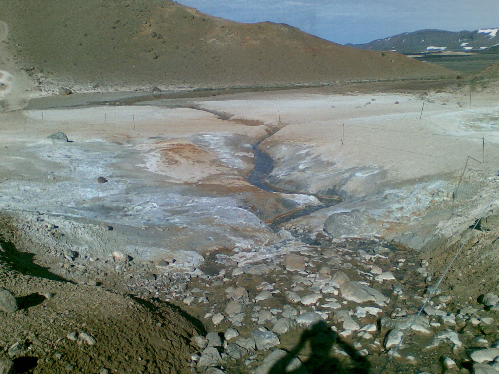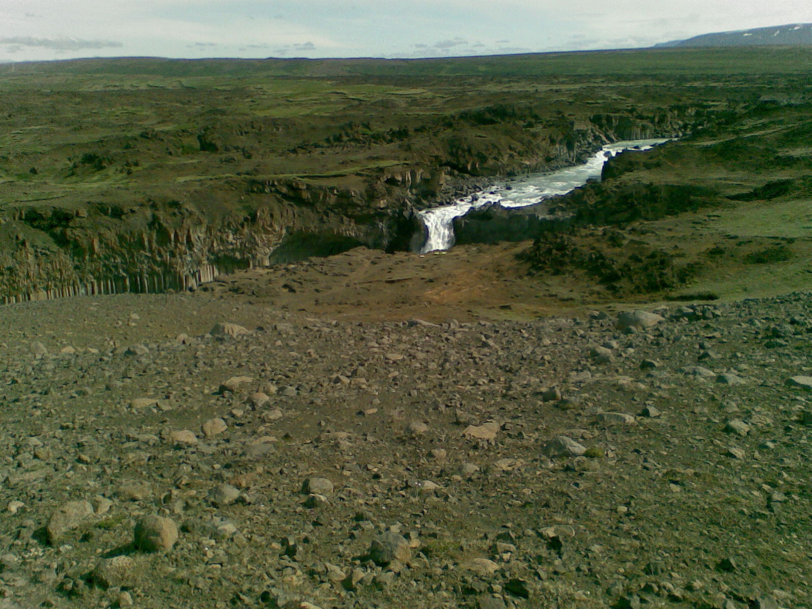 Nog vroeger opgestaan. Daarna me naar het lokale 'busstation' gesleept. De bus naar Krafla arriveerde op tijd, en de chauffeur viel uit te (laten) leggen, wat ik met mijn bagage wilde. Keurig bij de vulkaan afgezet. Daar rondgekeken, onder het oorverdovende lawaai van de lokale putten waar ze de warmte uit de grond halen voor het lokale krachtstation... Tevens waren er veel fransen in de buurt. Een paar uur later komt de bus je halen voor het vervolg, een trip door de wildernis naar Dettifoss. Klein probleem, autos en bussen doen het beter met brandstof. We vielen ruwweg een km voor de bestemming stil, maar gelukkig was de andere bus dusdanig dichtbij dat we een lift naar de plek kregen, en toen verder naar de waterval konden kijken terwijl de heren chauffeurs het verdere transport konden regelen.