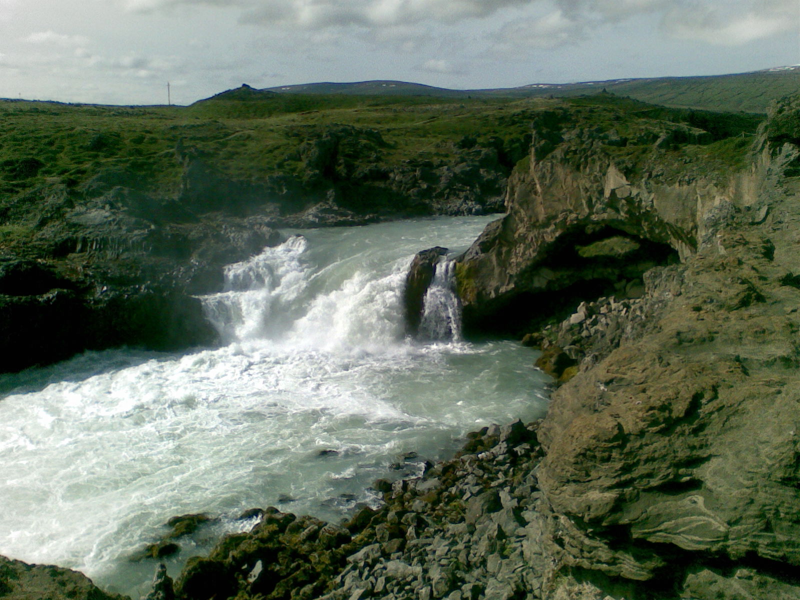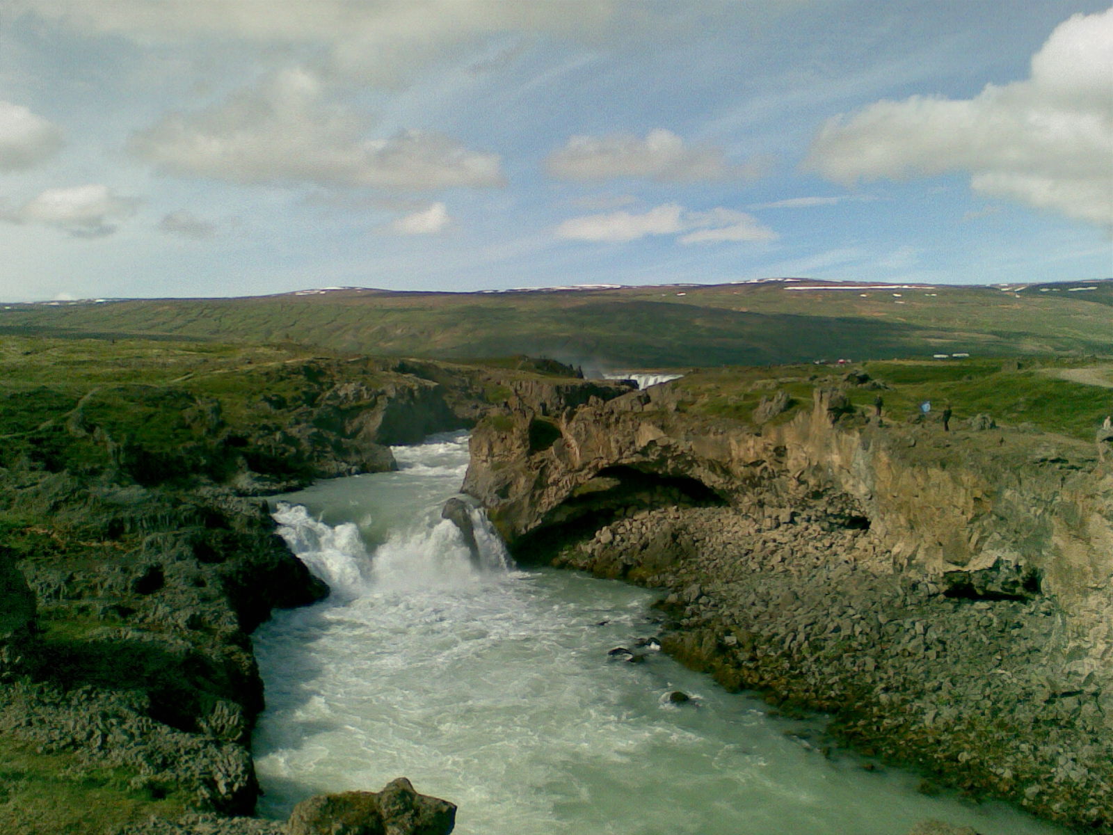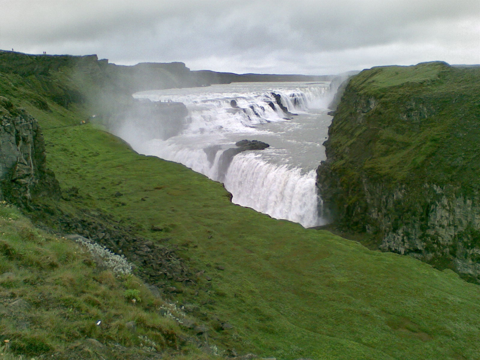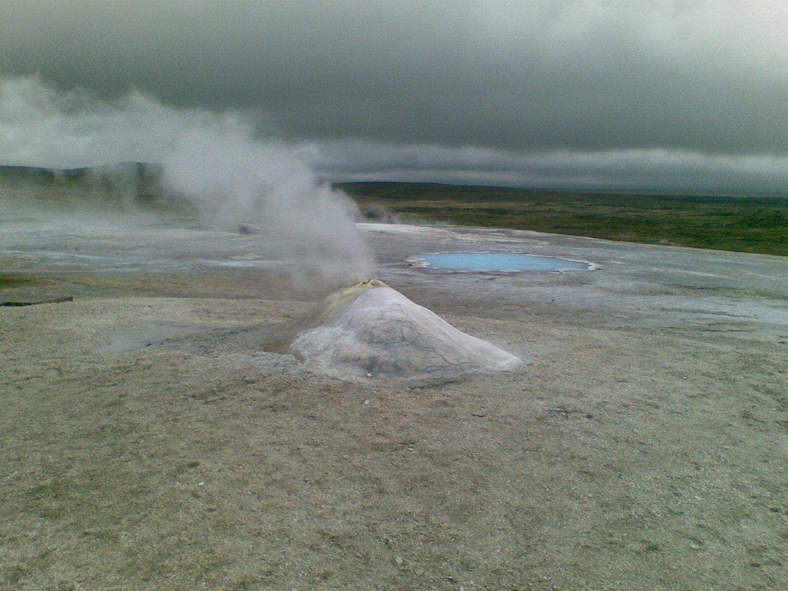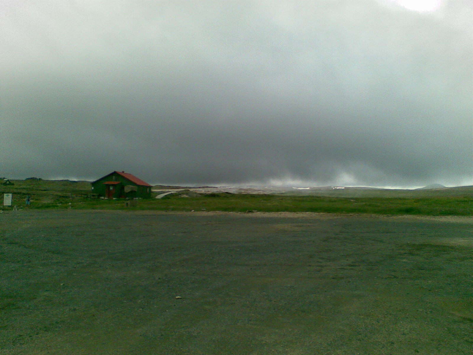 Vervolgens ga je van de snelweg af, naar iets dat tussen de gletchers door voert. Enige probleem is dat de bewolking niet echt mee werkt, zodat je voornamelijk kaal landschap en dreigende luchten ziet. Maar, een stuwmeer hier, en wat warme bronnen daar, gevolgd door een kudde paarden en een stevige waterval en minder indrukwekkende geysirs brengen je totaan Geysir. Enige probleem daar is dat goedkope huisvesting niet echt makkelijk te vinden is. Gezien mijn wensen om morgen door te reizen naar Þingvaller waren maar eigenlijk twee plekken geschikt. De ene net achter het hotel, maar die zat helaas vol. De andere was dus minimaal 4 km terug, vanuit de richting waar ik net vandaan gekomen was. Deze wel gevonden, maar ik denk niet dat wifi tot de mogelijkheden hier behoren...