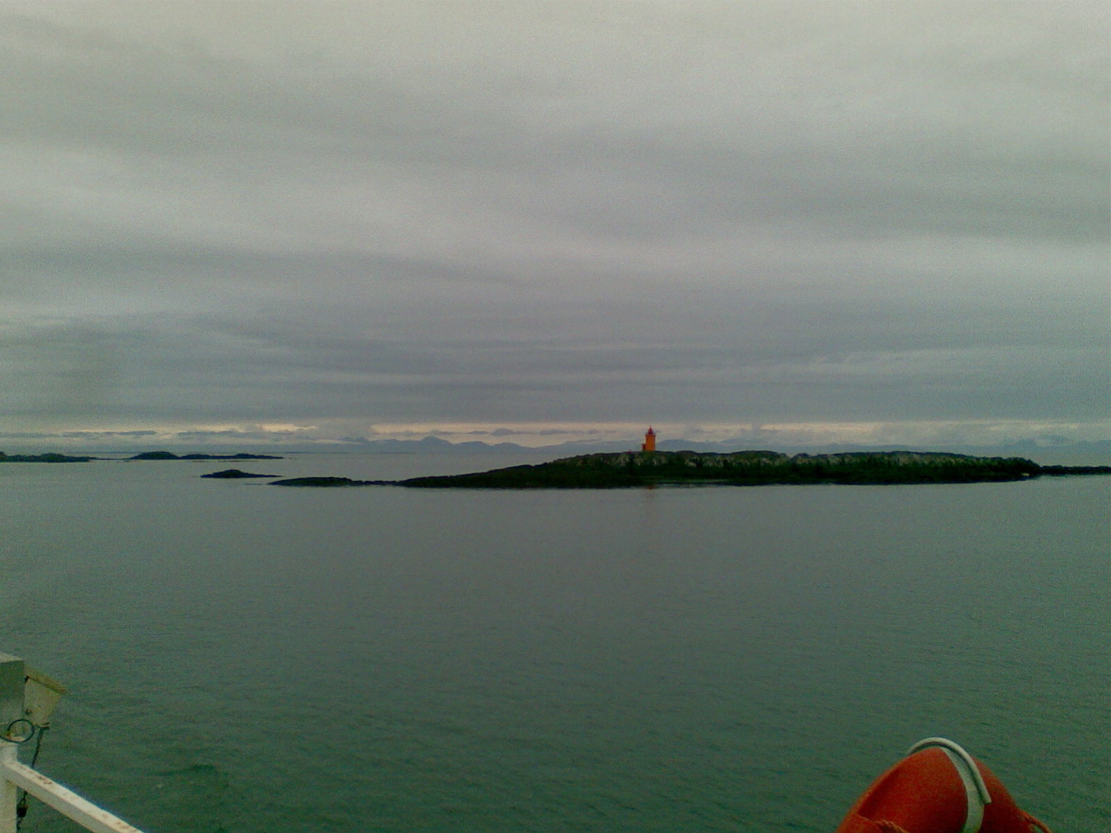 De vlucht zelve was voornamelijk bewolkt; en je vliegt boven veel water, volgens de kaart, en nogal wat wolken. IJsland is zo ongeveer het eerste dat opvalt. Het tweede is dat het niet echt duister werd, Formeel moet er toch een paar uur duisternis zijn, maar rond hobbelend na middernacht viel dat niet echt op. Via een luchthaven die verder niet controleert; een van de voordelen van Schengen, een bus die in 40 minuten ruwweg 40 .. 50 km aflegt en een kleine wandeling kom je dan bij een hostel met een bed en wifi.