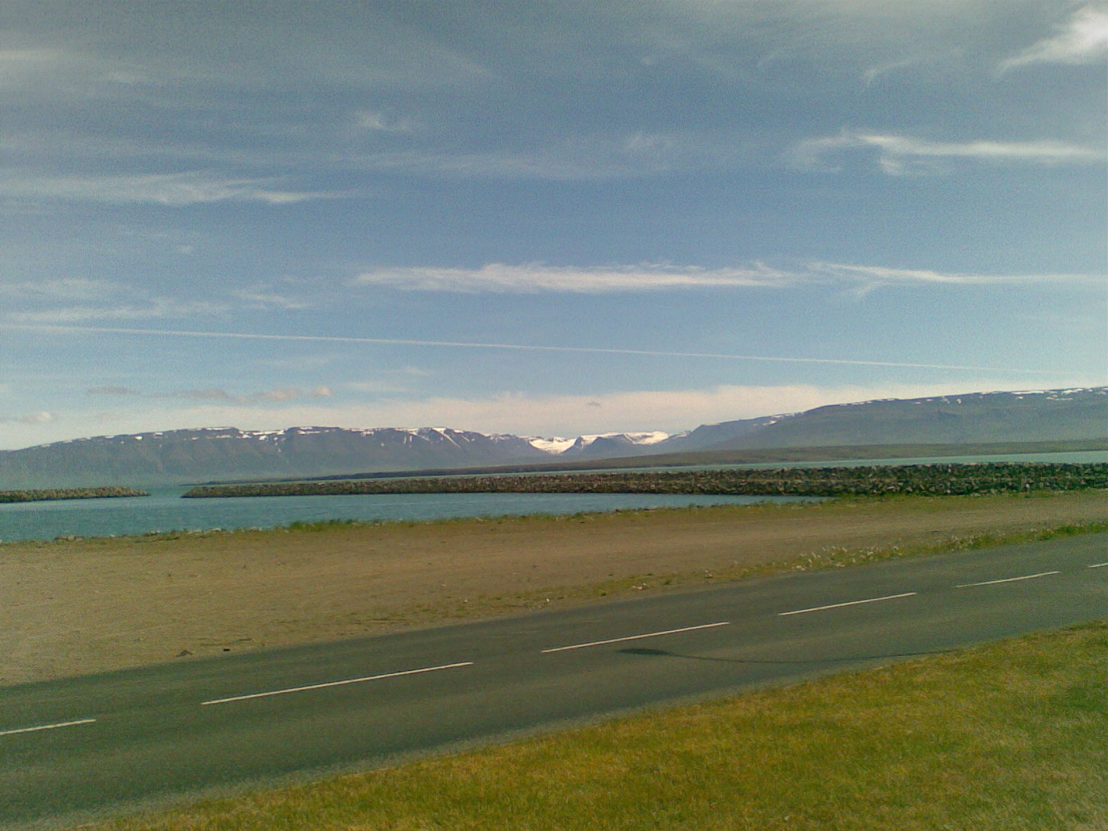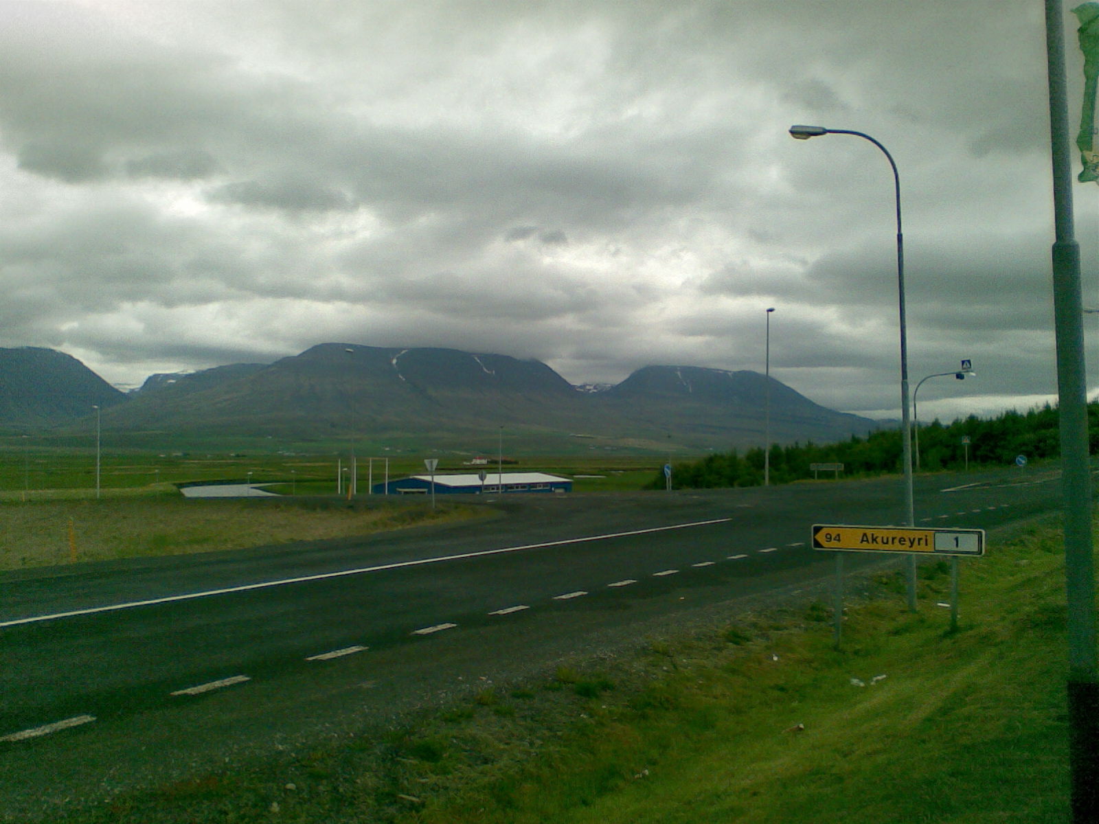 De nieuwe route tussen Siglufjörðer en Ólafsfjörður bleek nog niet open, dus moest ik enigszinds terug om de weg naar Ólafsfjörður en Akureyri te kunnen nemen... Deze keer duurde het in ieder geval tot na de tunnel voordat ik werd opgepikt door een stel zwitsers in hun camper. Omdat ze die niet wilde beschadigen gingen zij terug via de westkant van het schiereiland tussen de fjorden. Nadat ik afgezet was bij de splitsing, ben ik de juiste weg opgelopen, en werd na enige tijd opgepikt door een stel chinezen die met een auto en een bestelbusje rond toerden. Dit bracht mij redelijk snel bij de jeugdherberg in Akureyri, waar de wifi uitstekend werkt, en m'n netbook had de code nog.