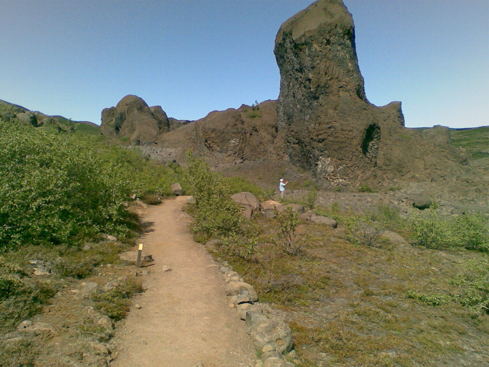 Bij die plek woei het nogal, maar ik had gezien dat er niet zo ver ten noorden daarvan een interessante plek was. Daarheen gewandeld, en de kraters bewonderd, terwijl de wind echt woei. Afgedaald en een lift gekregen naar het kruispunt van de route 60 (waar ik zojuist vandaan kwam) en route 1 naar het noorden. Enige tijd later kwam daar een auto met een stel kanoes op het dak en tween jongens langs. Deze gaven me een lift totaan Blönduós. Vervolgens de gebruikelijke route van tankstation naar tourist information naar hostel. Enige probleem, de hostel accomodatie was schijnbaar in onderhoud, zodat ik nu weer in een dure kamer slaap, betaald met m'n laatste kroner... Geen draadloos internet, en de computer in de "woonkamer" leek nogal uitgeschakeld; misschien dat nader onderzoek t.z.t. helpt.