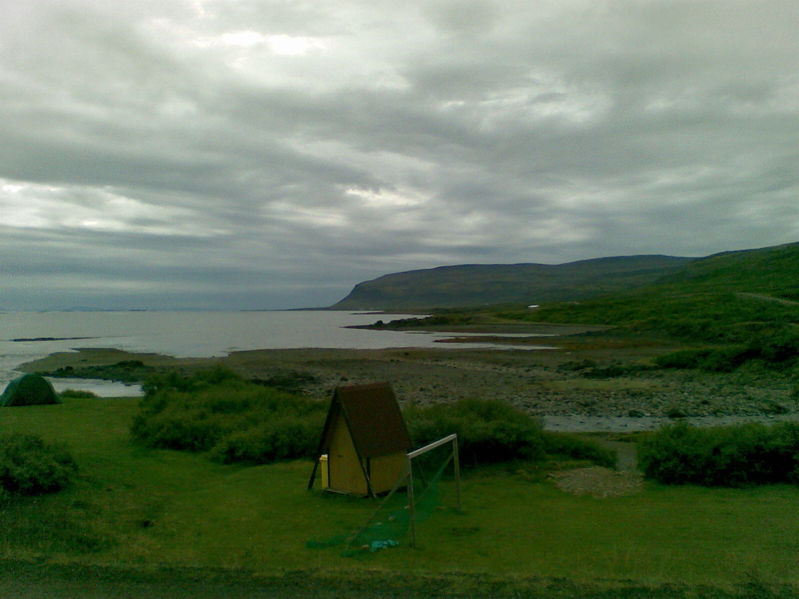 Redelijke nacht, alhoewel je hier echt verduisterings schermen nodig hebt. De wifi bleek wel in het hotel te werken. Daarna me via een ATM en een supermarkt naar de weg naar o.a. het noorden bewogen. Eerste lift kreeg me van weg #1 totaan de splitsing van de weg naar Skagaströnd en de weg naar Sauðárkrókur. Daar enige tijd doorgelopen totdat ik een lift kreeg naar Sauðárkrókur. Vervolgens kon ik die plaats uitlopen en een lift krijgen naar Hofsós, een plaats die na de emigraties leeg gelopen was. Een kleine wandeling later, kreeg ik dan een lift naar Siglufjörður. 't Gaat nog interestant worden, de weg naar de volgende plek gaat eerst een eind terug. 't Landschap is, afgezien van de fjord en gletchers, voornamelijk leeg.