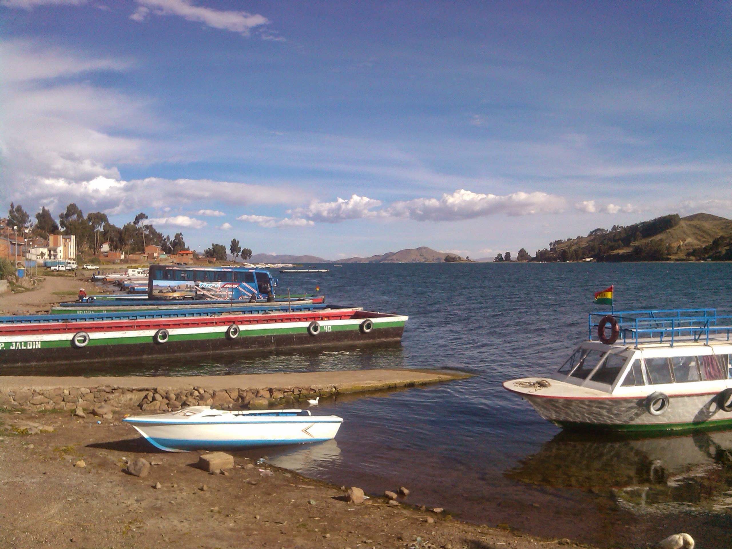 Daarna afgereisd vanaf een zeer geldbeluste terminal (ze vroegen minimaal 60% meer dan normaal voor drank) naar Copacabana. De route voert ook via een pontje; de bus gaat op een ponton