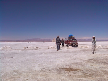 Na een tweede ook niet zo koude maar wel verstoorde nacht naar de oude bus terminal gegaan, en daar een ticket naar Uyuni gevonden. Enige tijd later, en langs een berg die misschien onder de sneeuw zat, in een woestijnstad aangenomen, en enige tijd later in een kamer in een hostel. De raison d'être van deze plaats zijn de trips over de zoutvlakte in de buurt. Daar dus ook plannen gemaakt om daar aan mee te doen. 't Moet tot veel foto's leiden.
