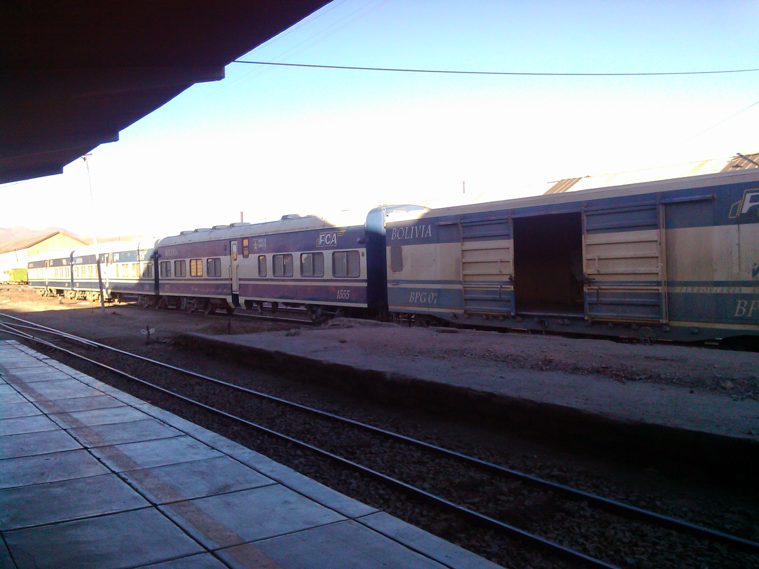 Daarna naar de grens getrokken, maar misschien is de bus de volgende keer beter; 't is iets verder dan je denkt. Brazilië uit, en Bolivia in is relatief pijnloos; alleen zijn de Bolivianen zuinig met hun visa. Geld van/via een wereldpas krijgen iets moeilijker; uiteindelijk maar mijn dollars gewisseld, en een kaartje binnenland gekocht. Geloofde niet dat dat de trein des doods nog reed, maar dit ding bleek ook als zo bekend te staan, en hobbelt ook leuk. Nu nog een foto ervan zien te nemen, en op te nemen in dit verslag. Enige probleem met dat idee was dat het duister was voordat we ergens langer dan één minuut bleven staan. Wel daar eten gescoord; kip met rijst en wat friet.