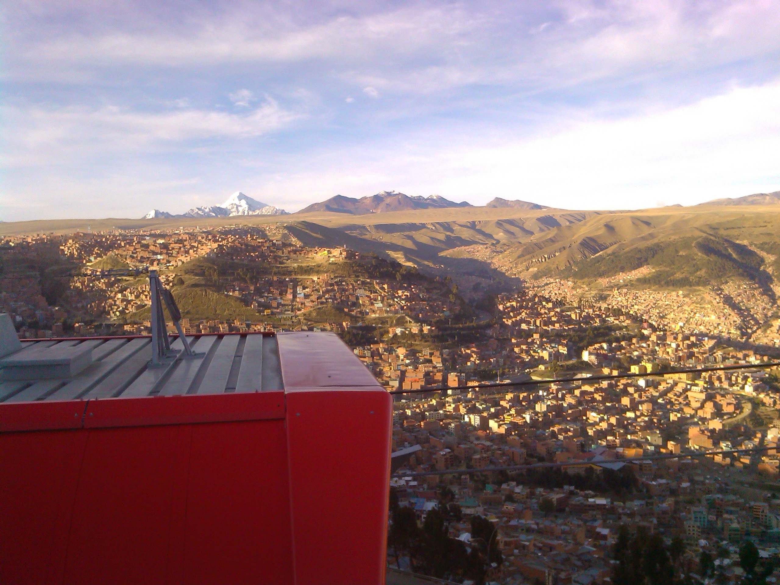 De volgende morgen daar ruzie over gemaakt, dat leverde in ieder geval een lagere rekening op. Daarna via het busstation naar La Paz afgereisd, weer terug de bergen op en de zon tegemoet. Dan kom je meer bergen met sneeuw tegen, en uiteindelijk via de luchthaven op 4,100 m in de stad op 3,700 m terecht.